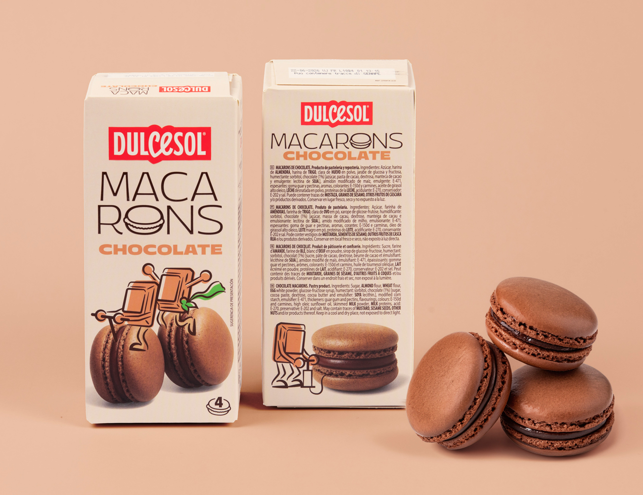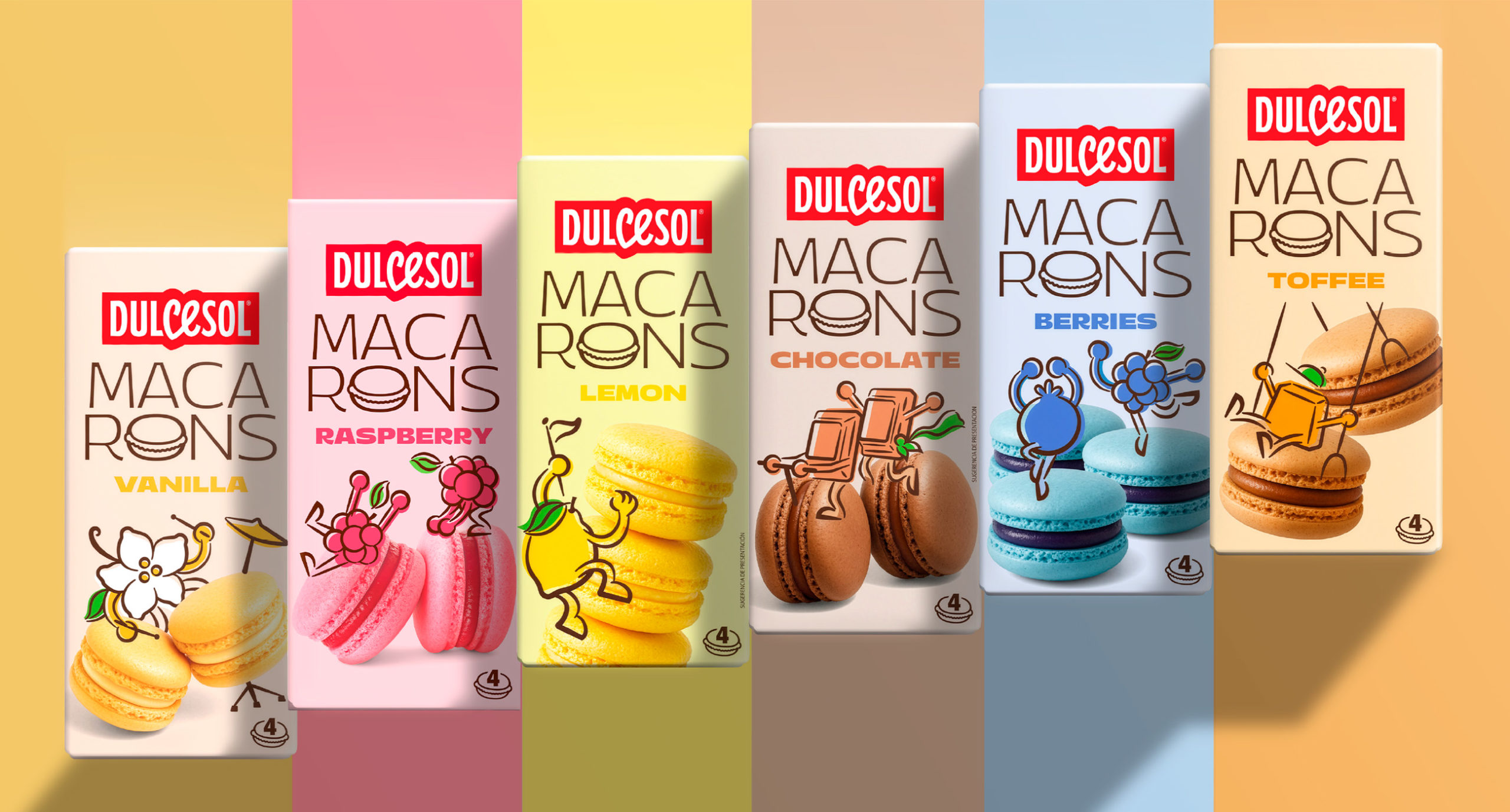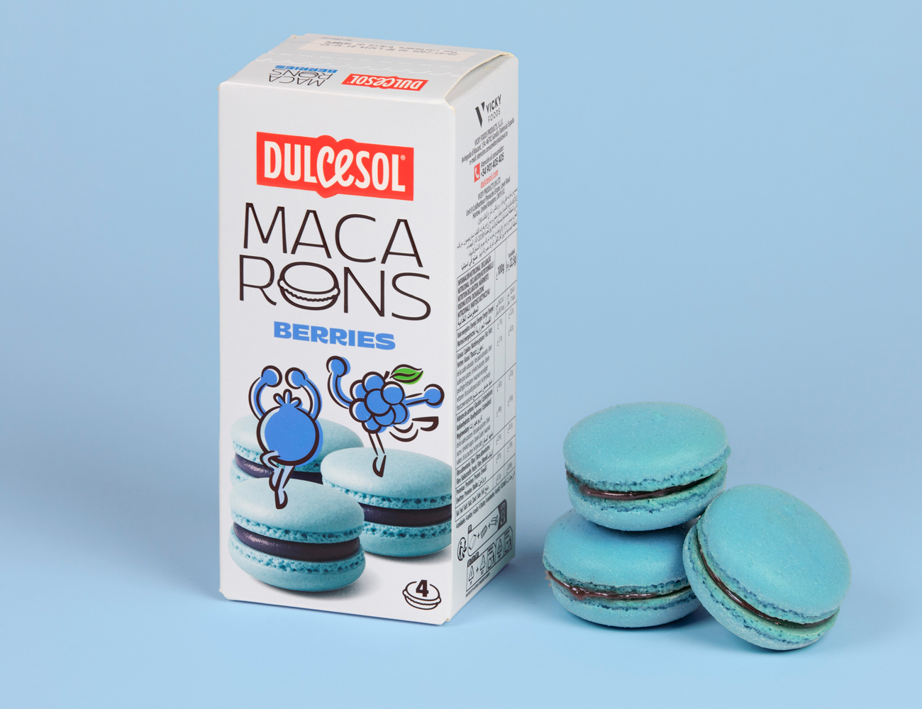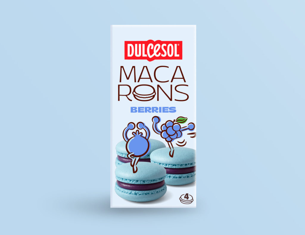 Rediseño de packaging de la línea Macarons Dulcesol del grupo Vicky Foods.