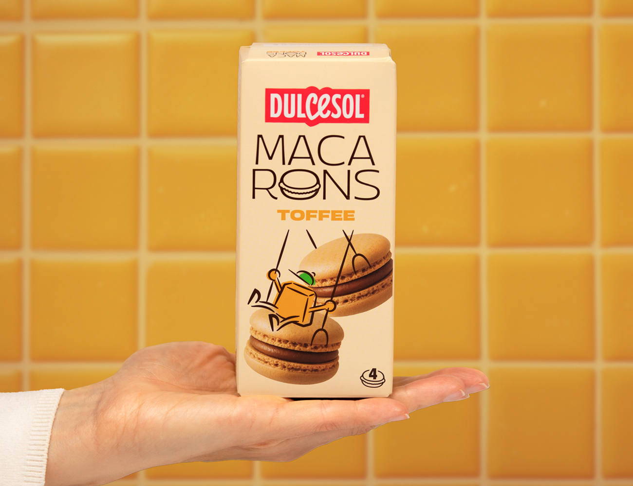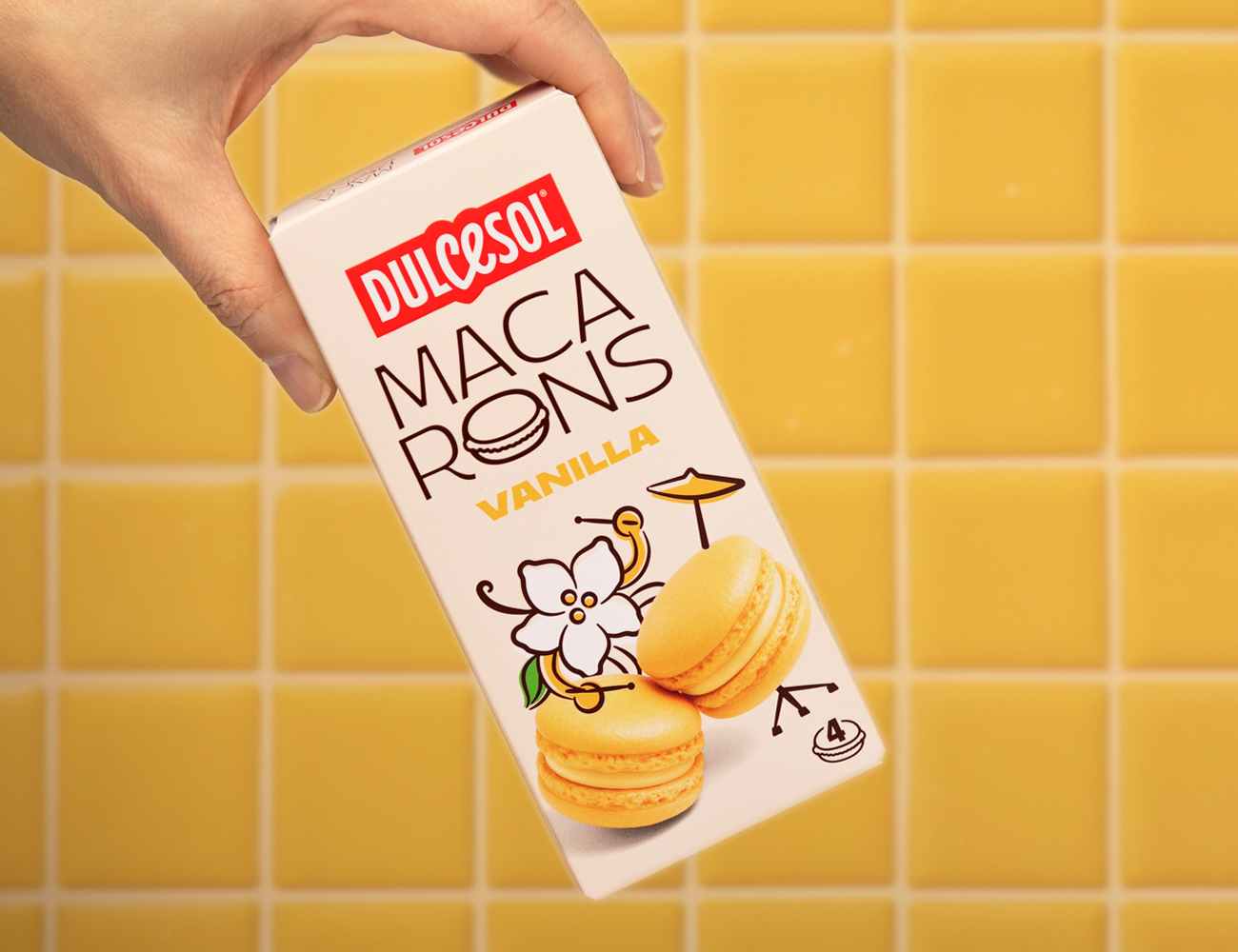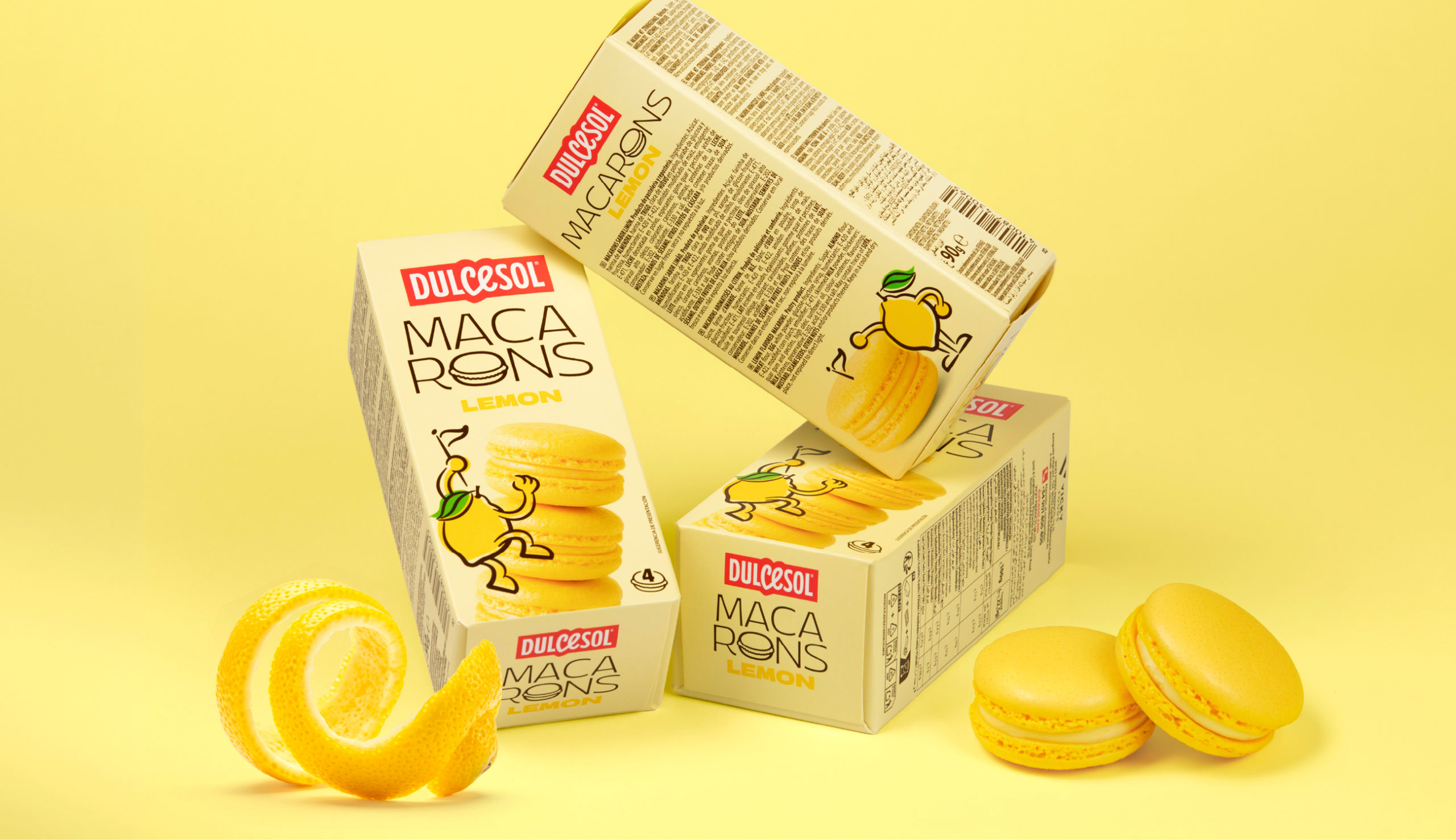 The Dulcesol brand comes to life through a series of playful, approachable characters that humanize each flavor and interact directly with the product. The distinctive shape of the macarons becomes a creative device—transforming them into motorcycle wheels, swings, mountain peaks, or even a drum kit.